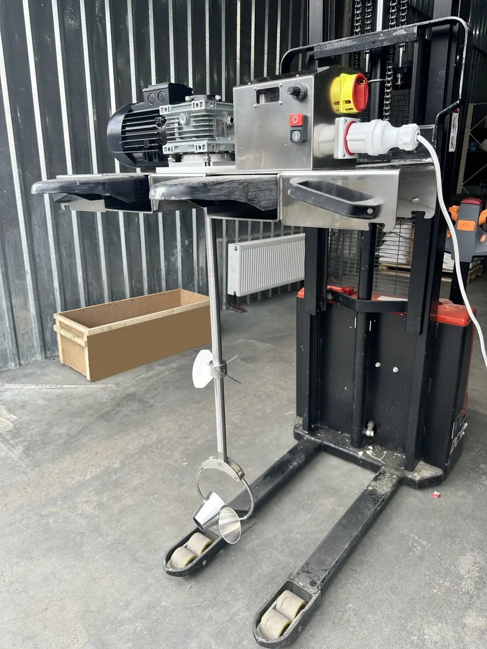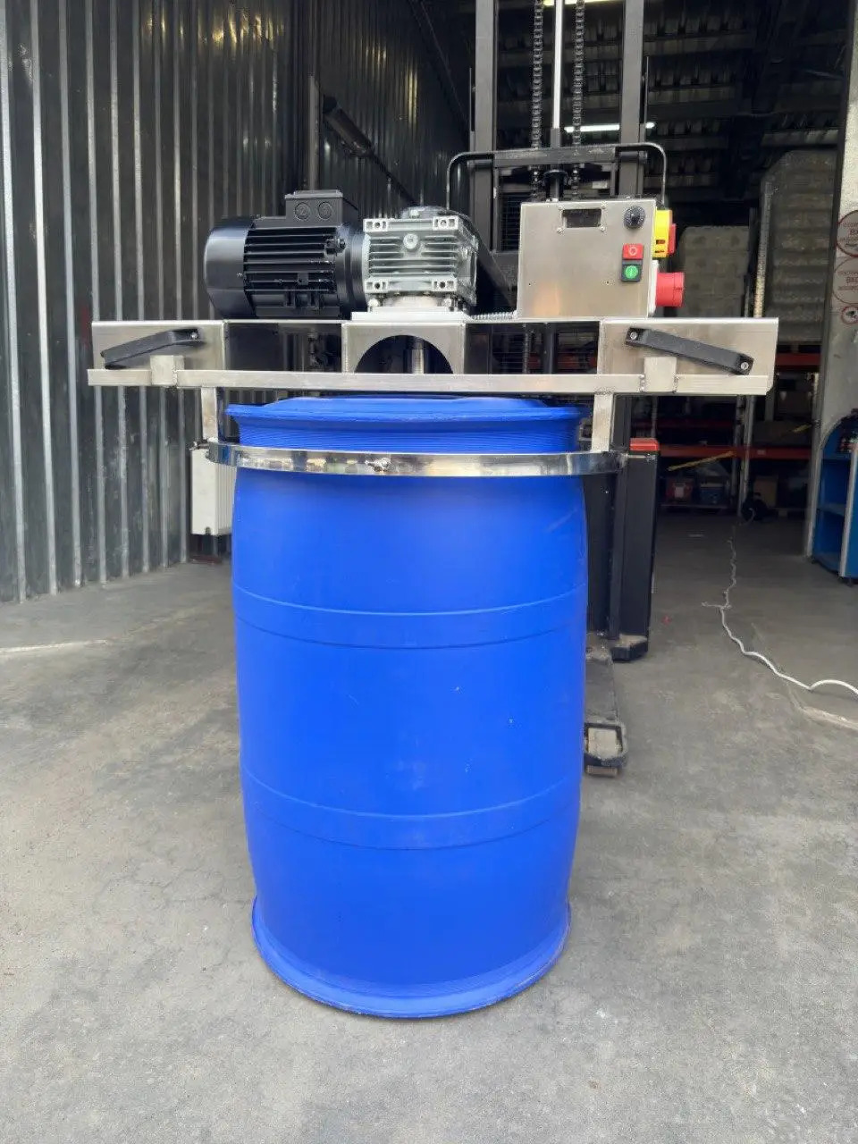 Máy khuấy thùng nhựa 150 200 lít là một loại máy dùng để trộn đều nguyên liệu bên trong thùng nhựa có dung tích từ 150 đến 200 lít. Máy hoạt động bằng cách dùng cánh khuấy xoay tròn để làm cho các nguyên liệu hòa quyện vào nhau.