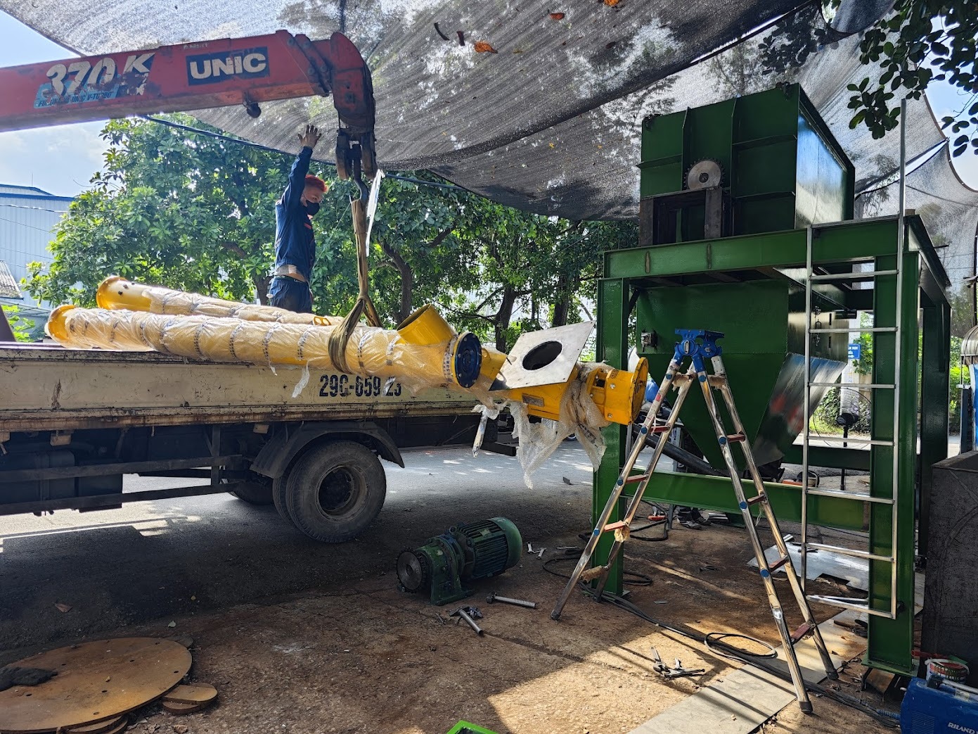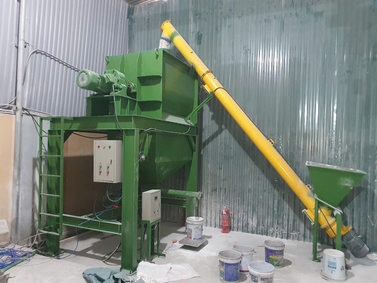 • Hệ thống vít nạp liệu: hỗ trợ đưa nguyên liệu từ mặt đất lên máy nhanh chóng và an toàn.